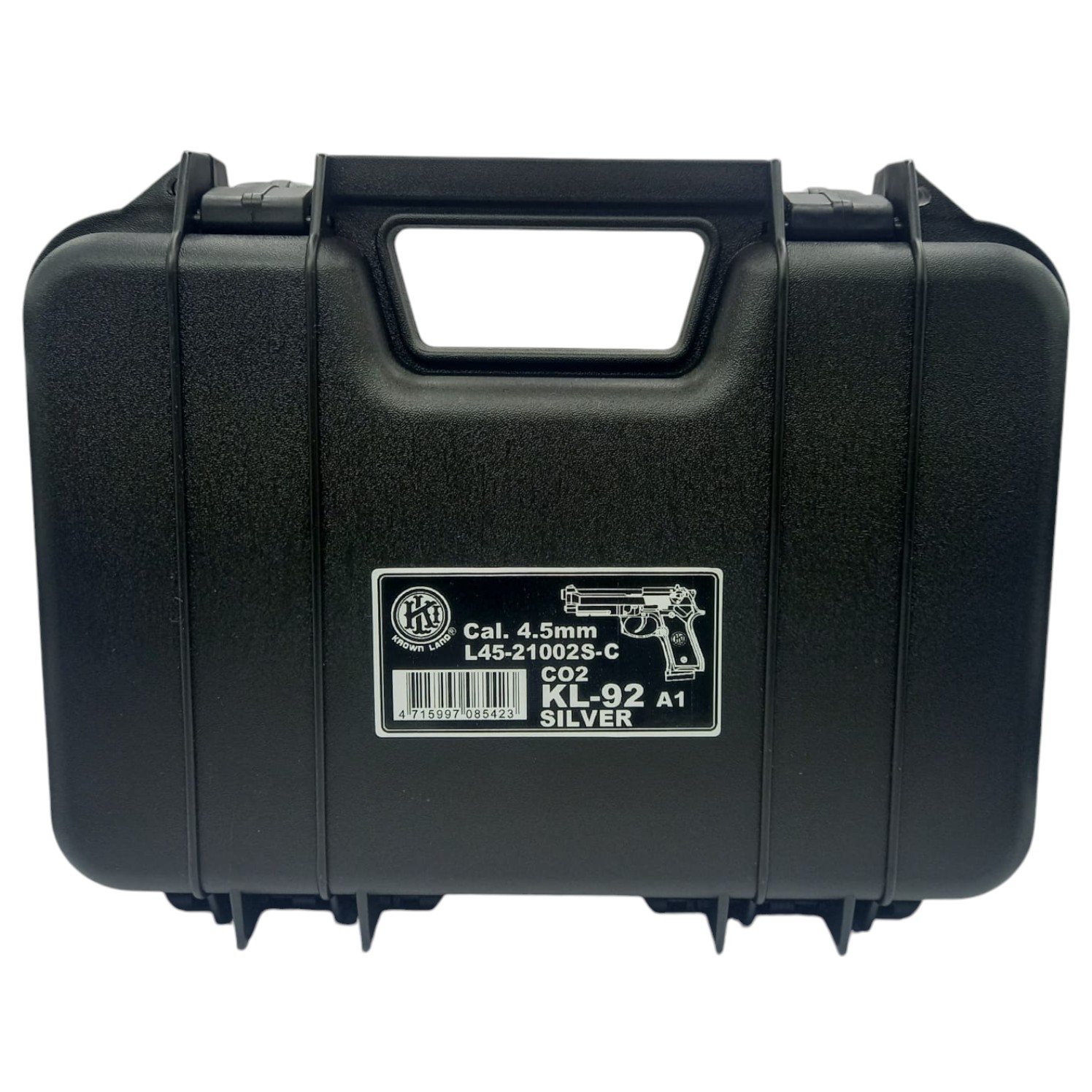 Esta réplica do Airgun vem no design padrão M92 Cromada da Beretta e foi reproduzida em escala pela KLI com um sistema de disparo com blowback realístico.